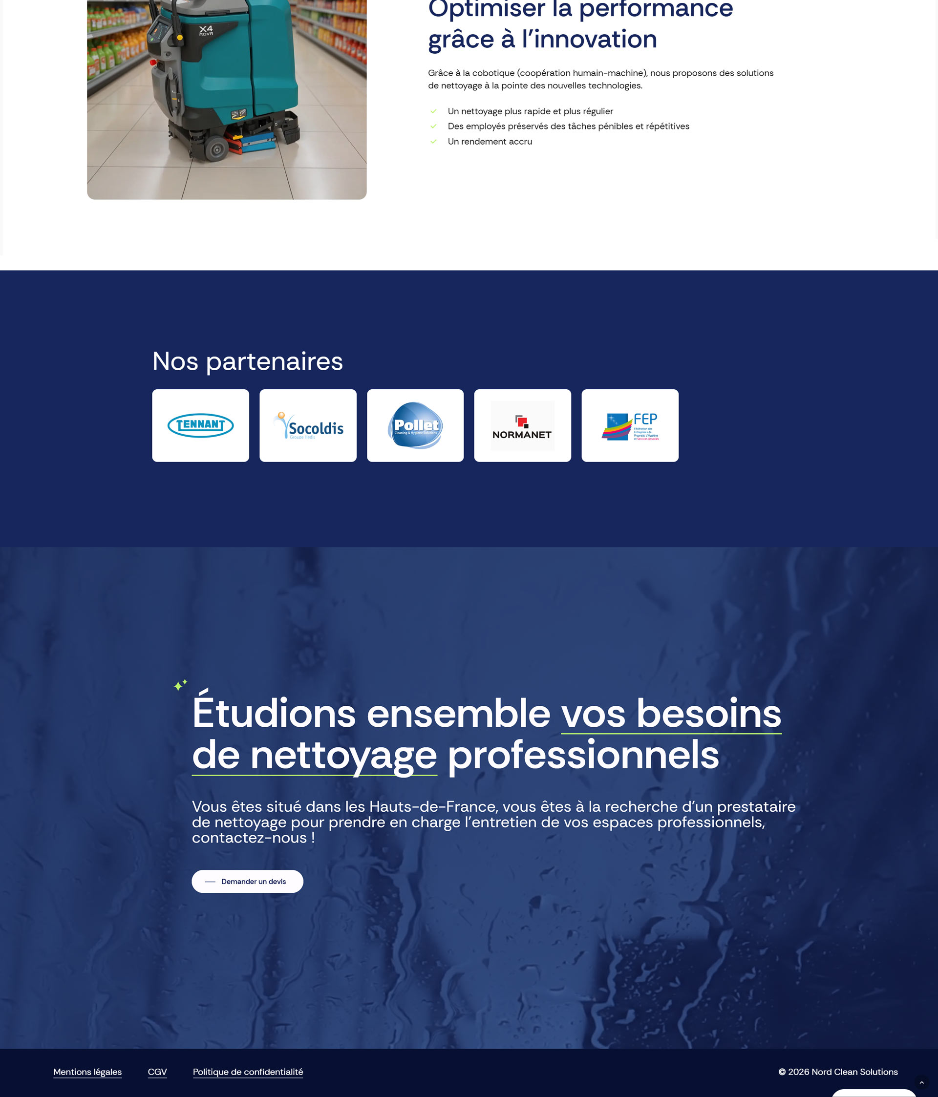 Nord Clean Solutions, acteur spécialisé dans le nettoyage industriel et les services aux entreprises, disposait d’un savoir-faire reconnu mais d’une visibilité digitale en décalage avec son ambition. Un unique élément de communication : son logo. L’enjeu était de construire une présence en ligne capable de rassurer les grands comptes tout en facilitant la prise de contact.